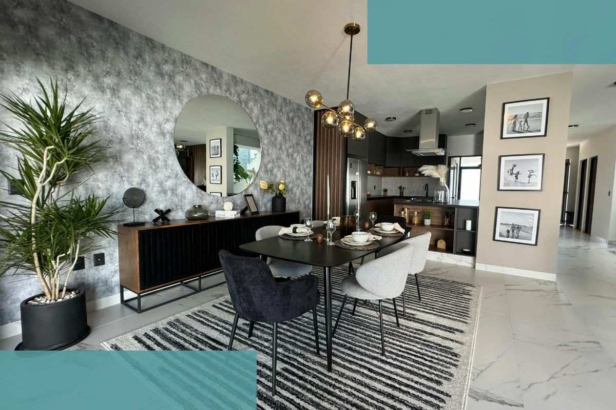 You might feature your accent metal on the hardware of built-in shelving, a striking light fixture above the dining table, or the frame of a mirror. Smaller touches like a metallic tray, picture frame, or bar cart detail can also introduce variation without overwhelming the space. The goal is to guide the eye through the room with subtle contrasts that feel deliberate.